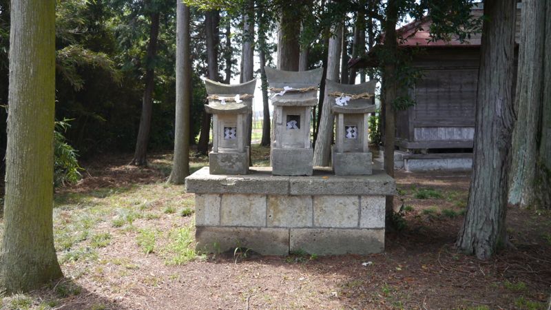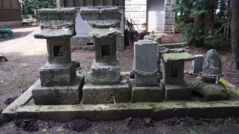 左手の3つの石祠は琴平神社・鹿嶋神社・?天社。