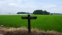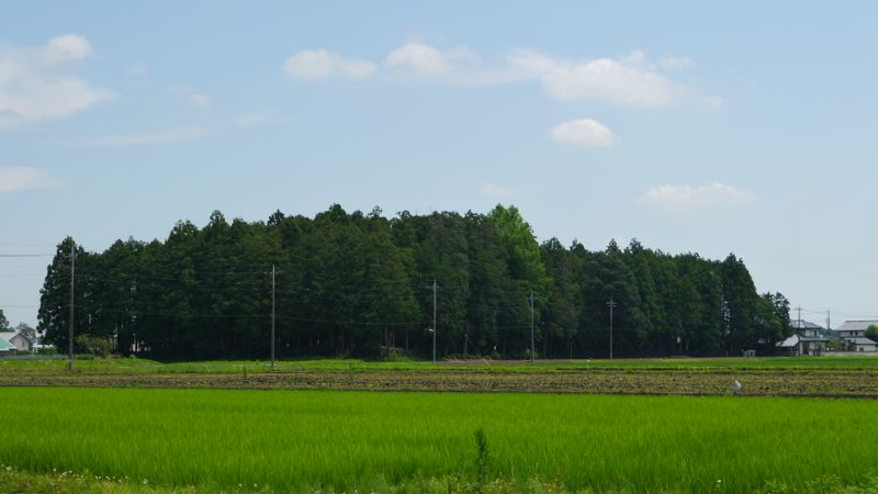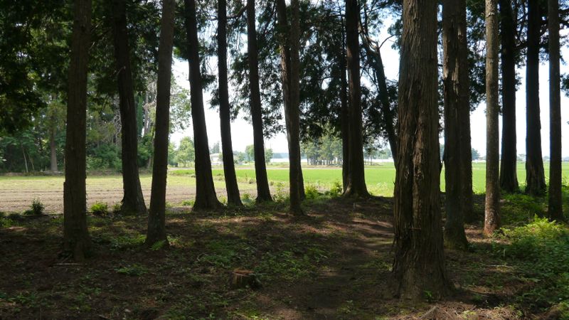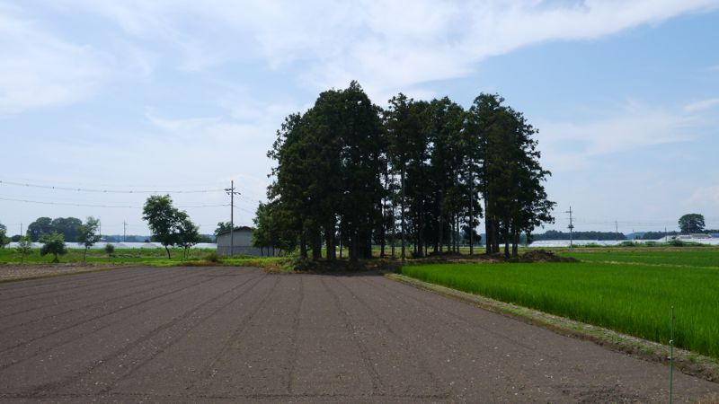 最初に延生地蔵の森の中を探したが,北のはずれから雷神社の鳥居がが見えた。五行川左岸の田園地帯。