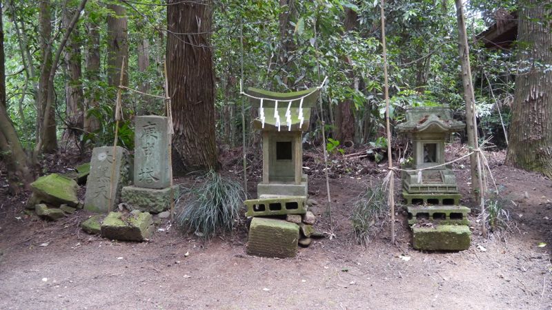 社殿左手に「天保十三年1842壬寅十一月吉日・庚申塔・打越邑」,「元治元甲子1864十一月吉日・大黒天・内越村講中」,石祠二基,倒壊した石祠または石燈籠。