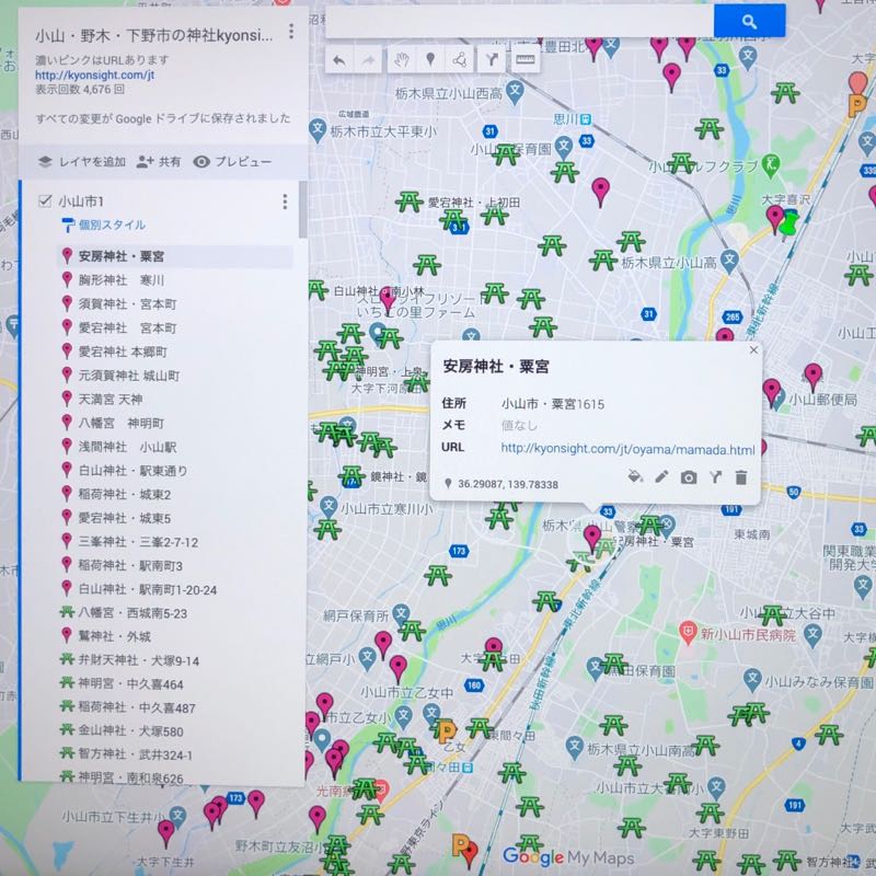 ■栃木県の神社GoogleMap分布