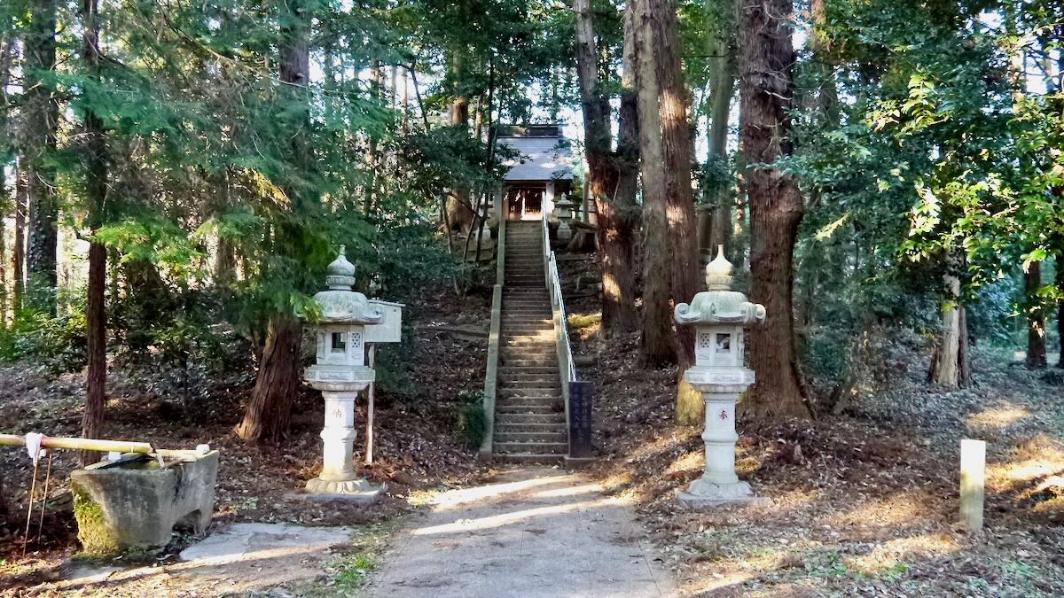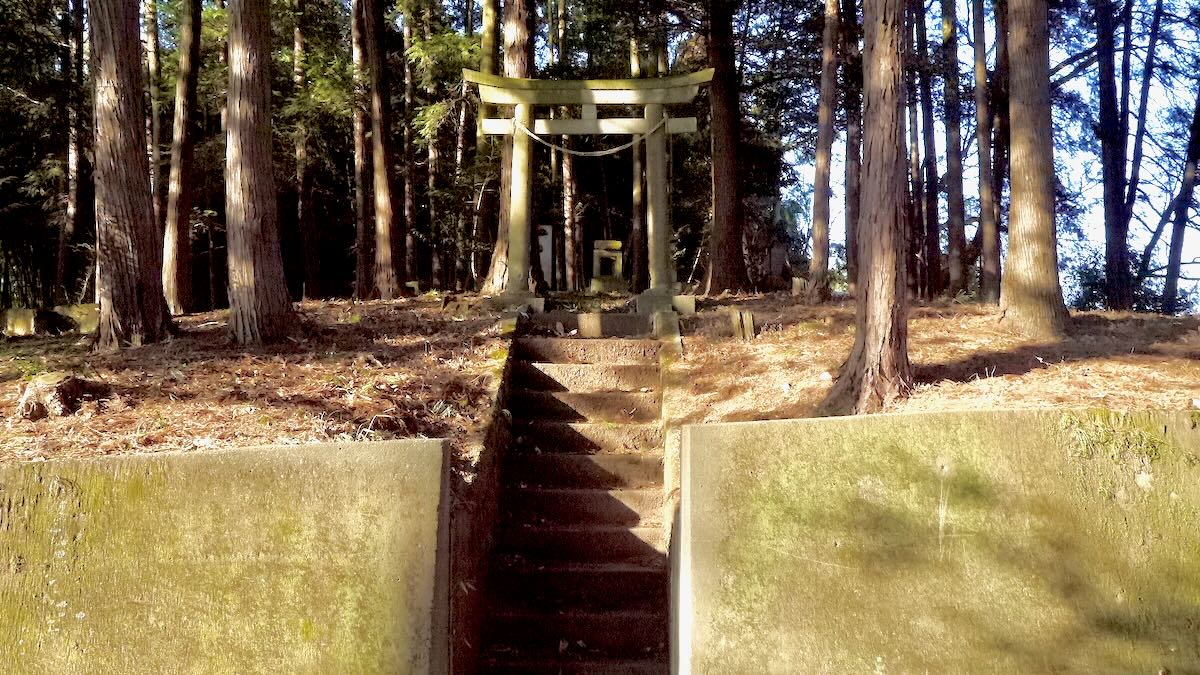 | 元文五庚申1740 | 古墳頂上に鎮座 | 二の鳥居から入口方向 |