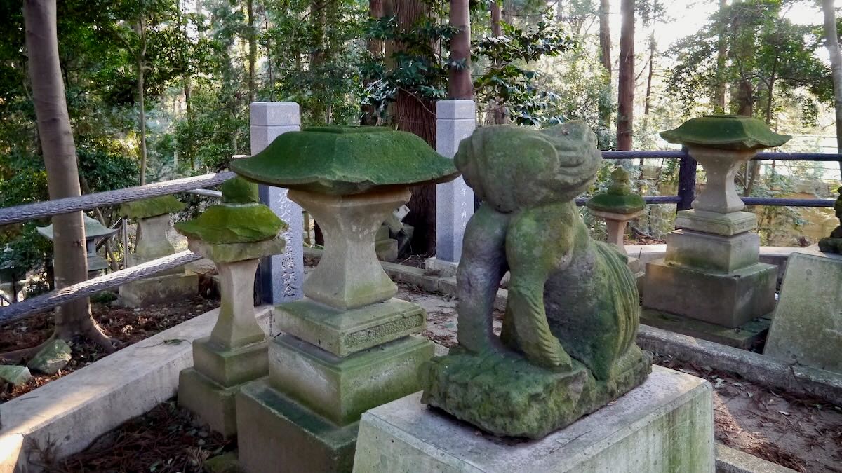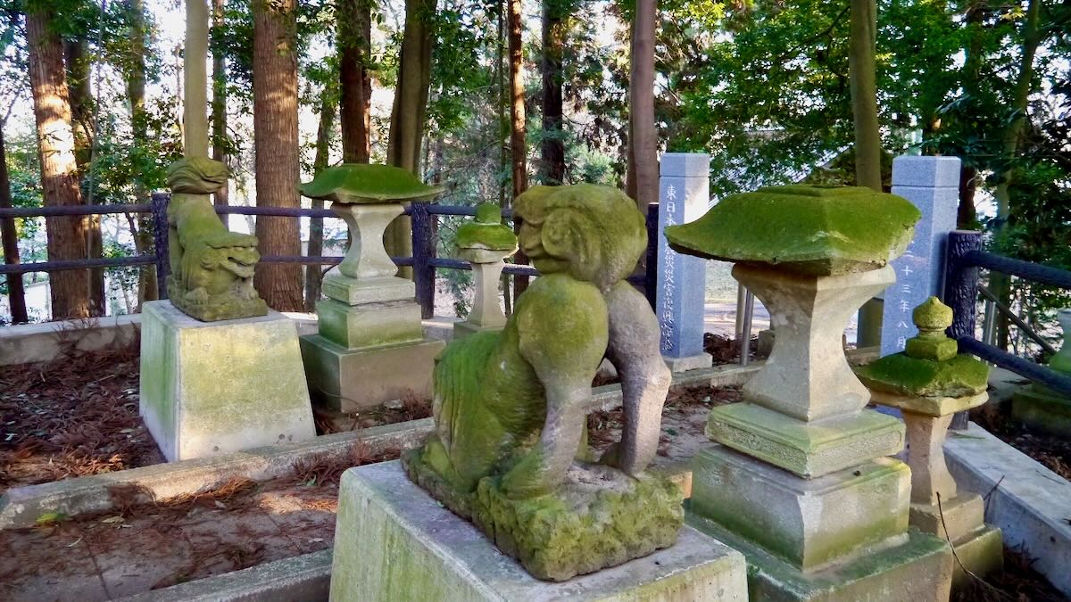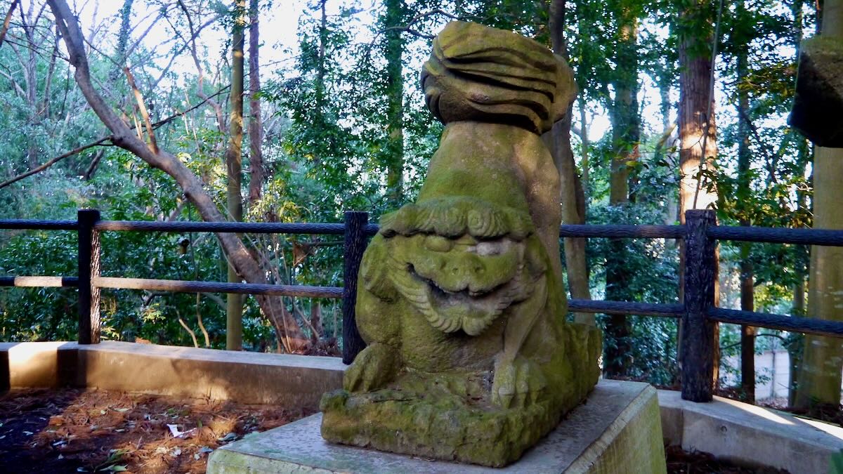 | 円形の玉垣 | 尻を立てた狛犬 | |