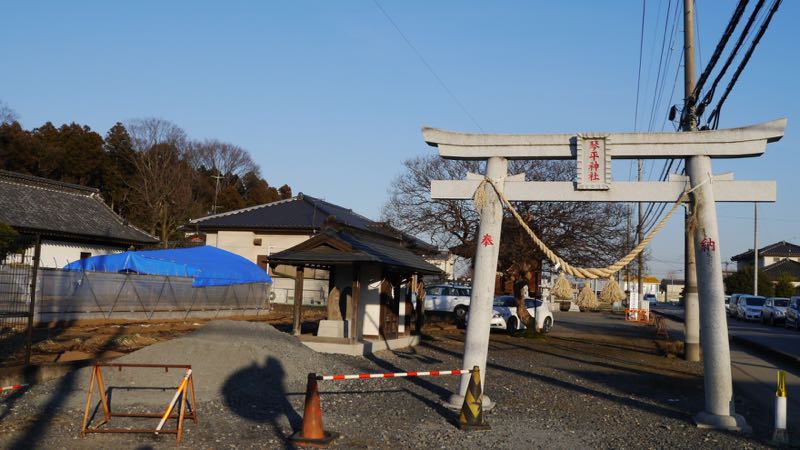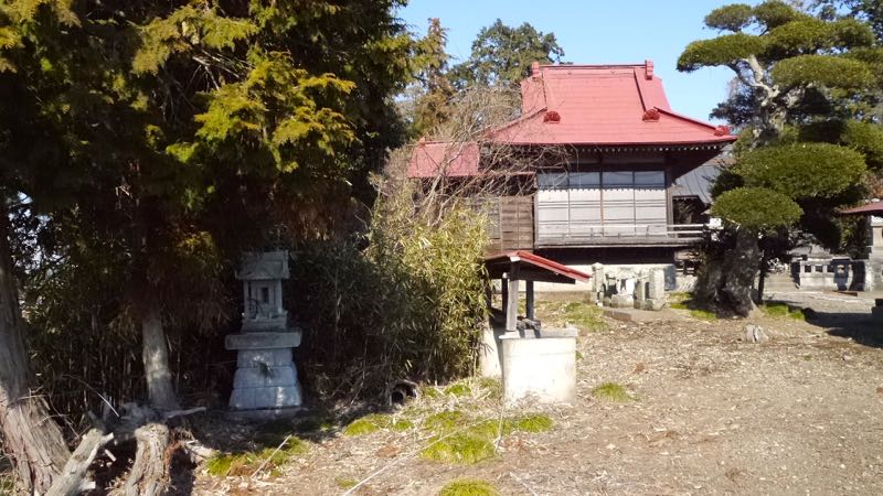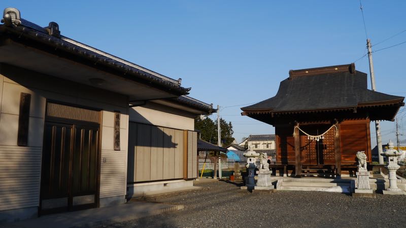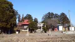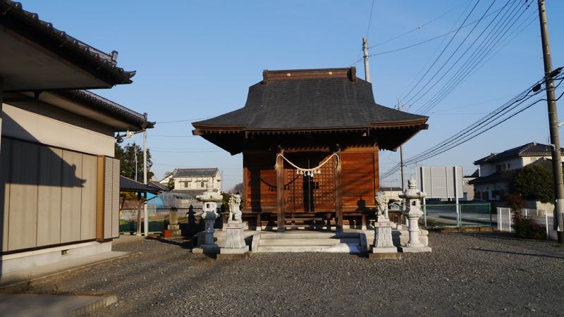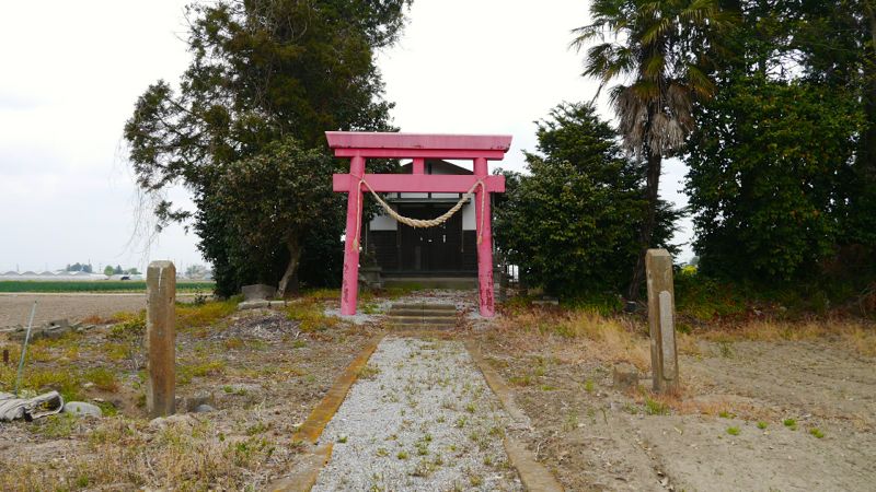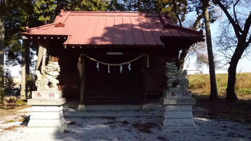 | 後ろに鬼怒川の堤防 | 参道右手 | |