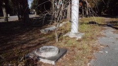 平成23年に鳥居を新築し,旧鳥居柱が脇に横たわっている。