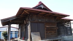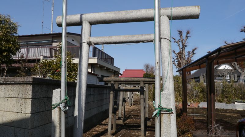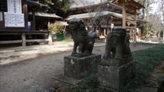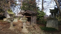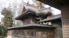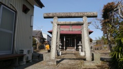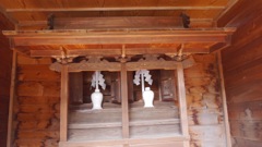 本殿に「大己貴命=多名持/大国主命」と書いた白紙が張ってある。石燈籠一基。