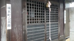 東武宇都宮線壬生駅のホーム南端から朱鳥居が見える。拝殿に「城東町公民館」と「東稲荷様」の札がかかっている。格子越しに拝見すると「正一位東稲荷大明神」と墨書された提灯がみっつ,石宮が一基祀られている。昭和三十七年1962寅年旧二月初午の幟も見える。