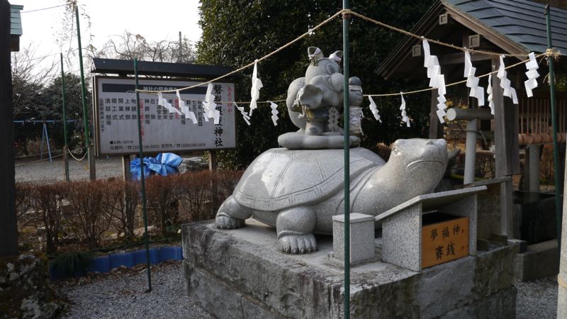 121号線栃木街道淀橋南交差点の南西に見える「亀塚古墳」に鎭座。通称「いわねさん」,恵方巻風習発祥の社で「福巻寿司発祥の地」の石柱が恵方神社脇に建っている。