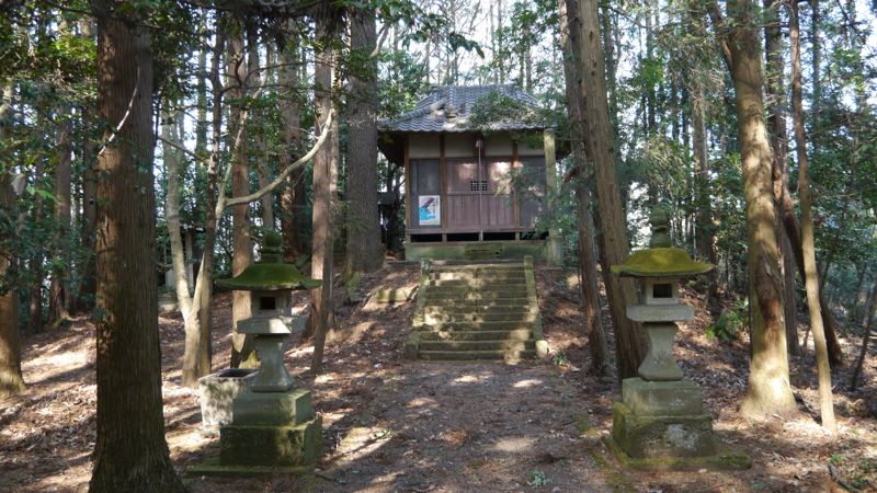 おもちゃのまちの北,姿川の西300m。田園地帯の森に鎭座。古墳様の盛土の上に建てられている。すぐ北に神明神社。