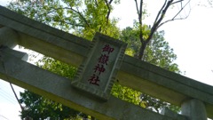 天子952の天満宮の東,北高岡交差点から坂を上りきった右手に鎮座。覆屋内の明治十四年1881の石板に三神が刻まれている。大宝二年702創建の木曽御嶽神社から二神を勧請して創建された。本社は国之常立神を祀るが,当社は覺明靈神を祀る。開拓の祖霊か。明治十四年あるいは江戸期の創建だろう。平成18年2006に石鳥居が奉納されている。