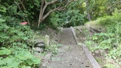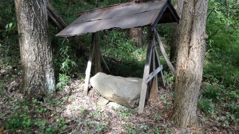 荒橿神社の南西に桔梗城趾は城山公園になっている。頂上手前のカーブに石鳥居。額にひらがなで「たばこ神社」とある。