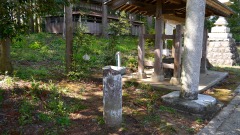 大正三年1914手水石。昭和七年1932狛犬。明治四十三年1910郷社指定記念(二度目の指定?)。昭和四十年1965拝殿改築記念碑。昭和25年1950境内地譲與記念碑。