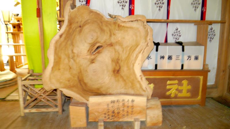 | 拝殿内の由緒書 | 御神木の枝? | |