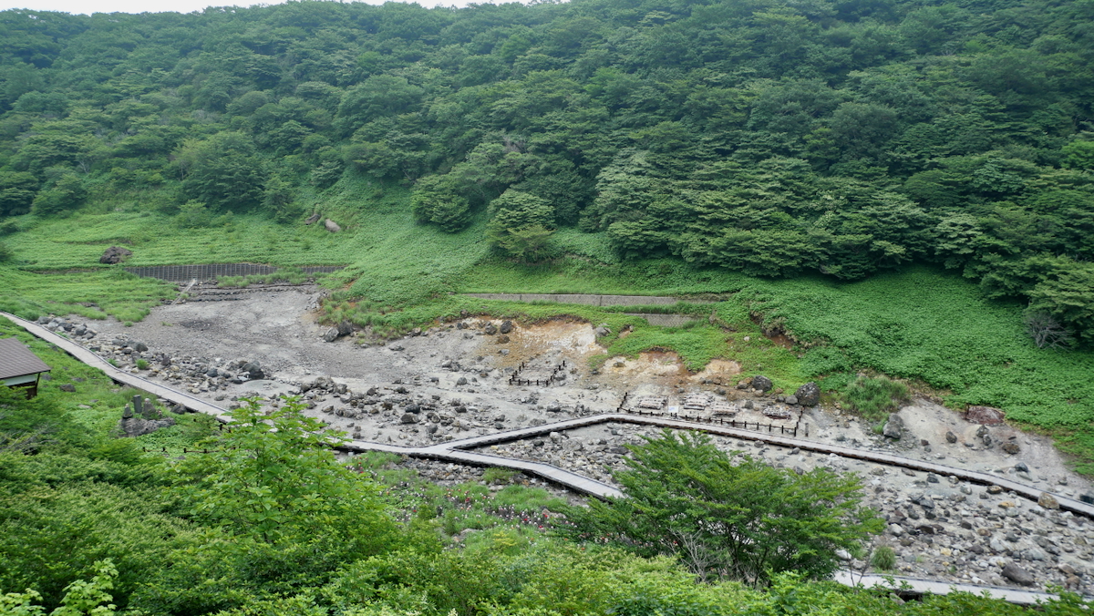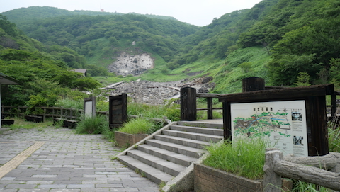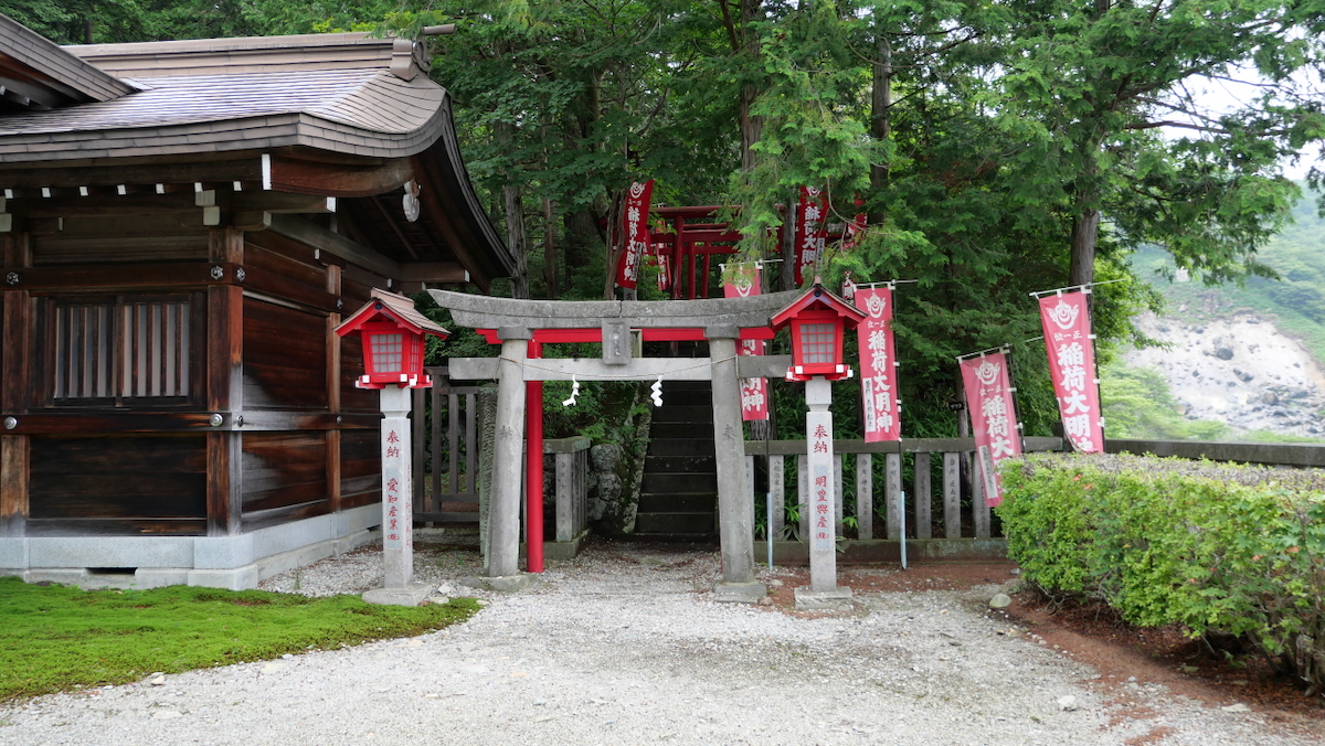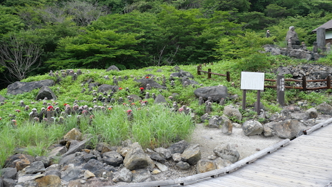 | かなり上ったことになる | 殺生石が見える | 駐車場トイレ裏の高湯山大權現 |