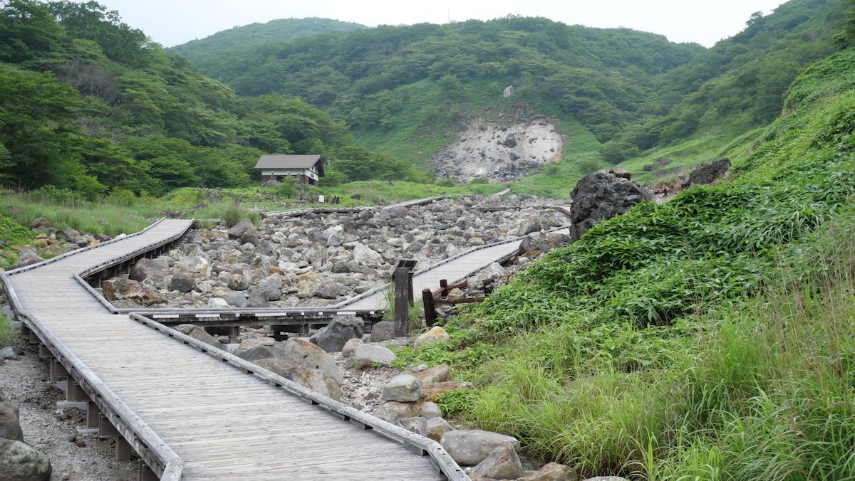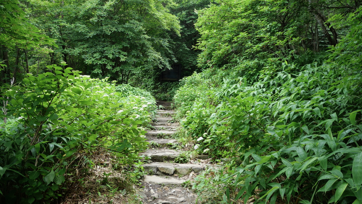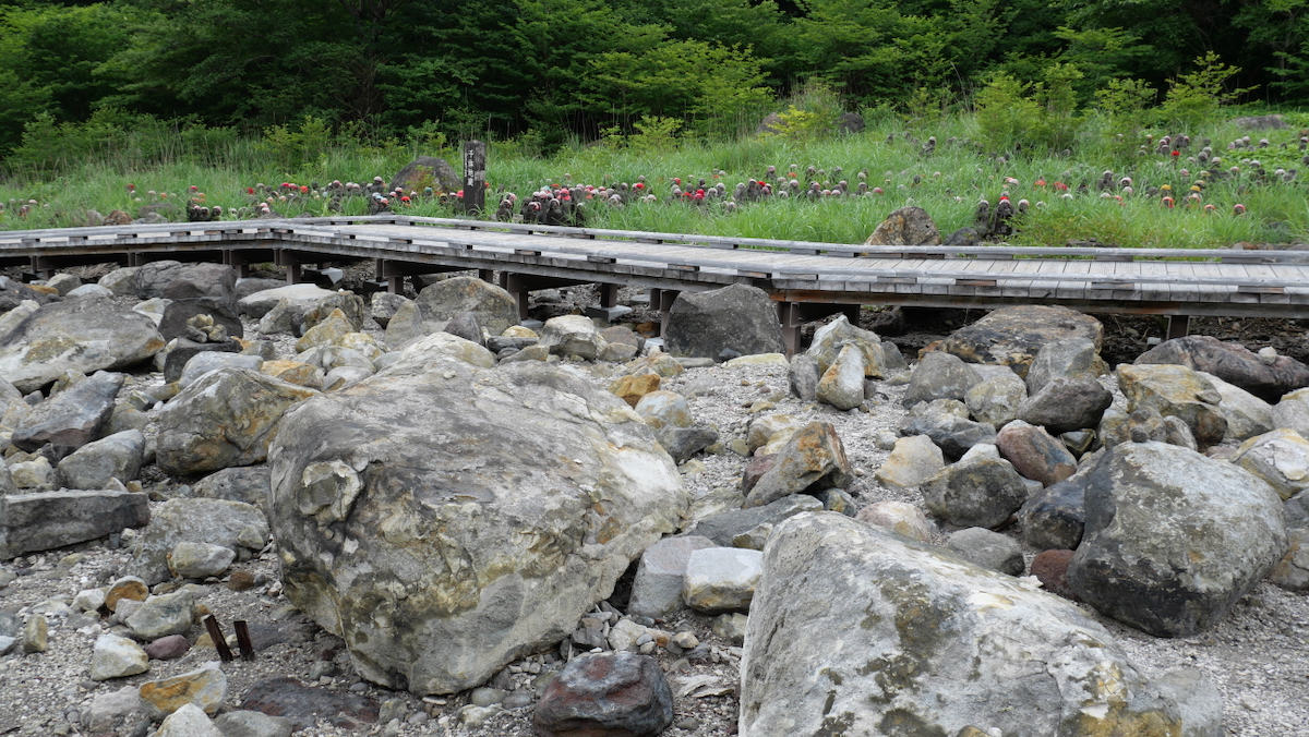 | 左に進む | ゆるやかに上る | 下の方に賽の河原が |