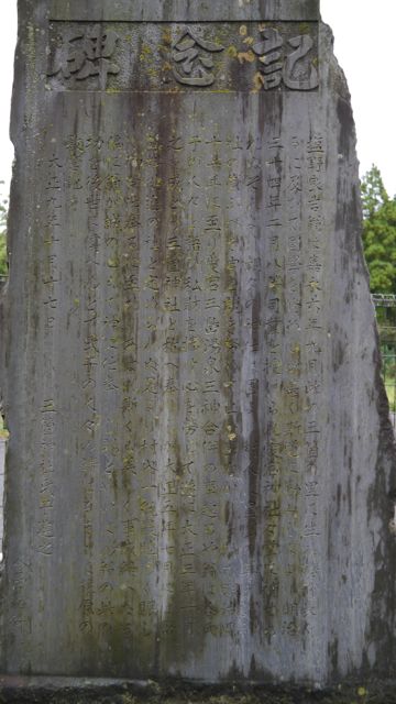 大正九年の記念碑には合併許可の大正三年に三箇神社となったと刻んである。。