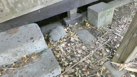 本殿脇は塚のように盛り上っている。