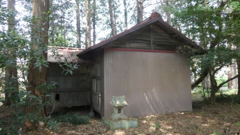 旧本殿は間口一間奥行一間流造木羽葺,拝殿はトタン葺間口五間奥行二間。石造の鳥居が二基あったが震災で倒壊し一基は銀色の鳥居に変わった。石段のところには鳥居跡が見える。