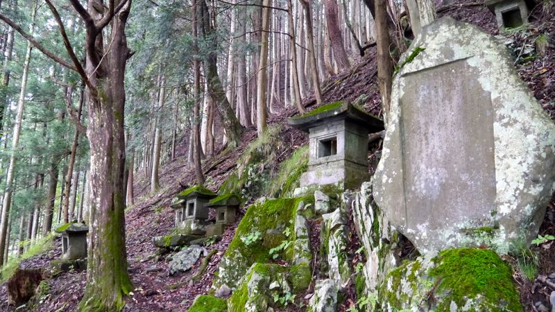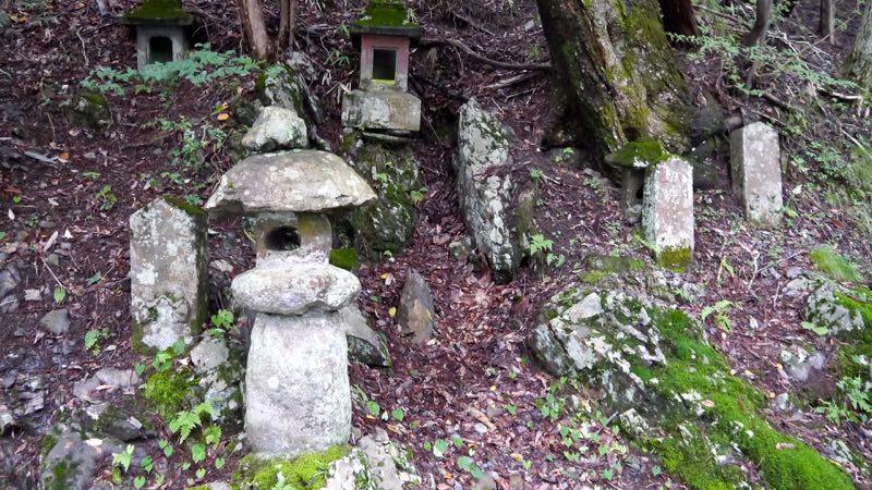 | 鳥居二基 | 鳥居右手に石塔群 | |