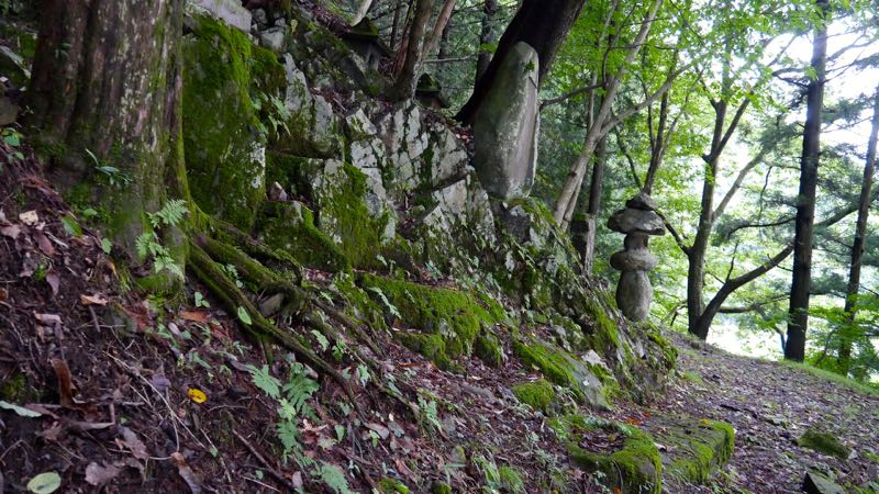 | 対岸にも鳥居 | 石垣の上に石塔 | 石鳥居 |