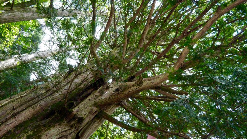 | 華厳カフェの右手に鎭座 | 赤矢印に鎭座 |