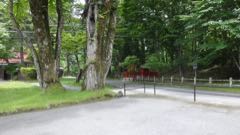 | 雲に隠れて男体山 | 八脚門 | |