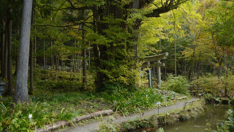| 付近の大さわら | 神社裏手の七滝 |