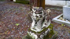 鳥居右手に「聖徳皇太子」,昭和十六年1941社号標。鳥居手前に文化丁卯1807九月の石燈籠。狛犬のつぎに昭和二年1927石燈籠。ふたつめの年代物の狛犬も奉納年が見えない。