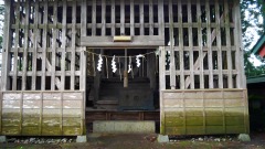 拝殿の背後がガラス貼りになっていて,本殿が見える構造になっている。本殿左下に大きめの「(天照)皇大神」の石板が保存されている。