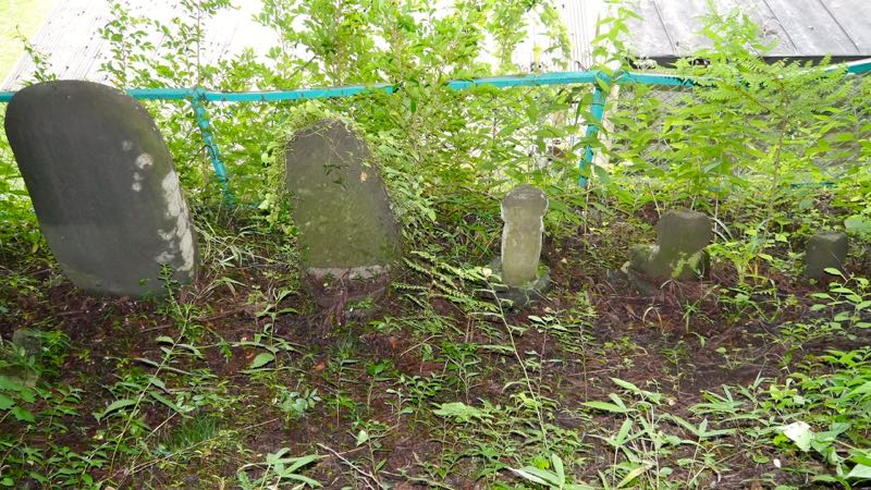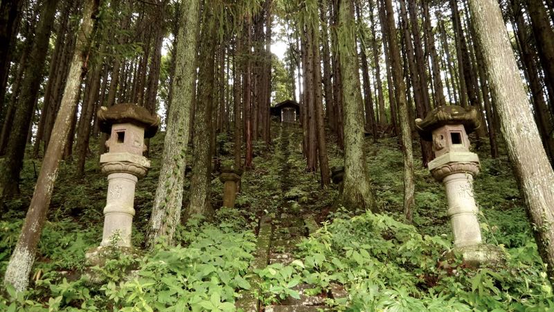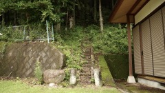 本社の左手に旧社殿と石燈籠が残されている。