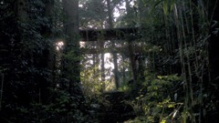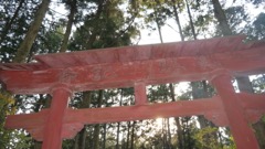 | 石段の上に鳥居が見える | 逆光 | |