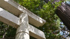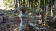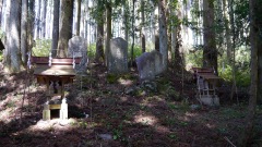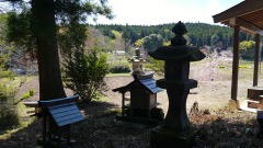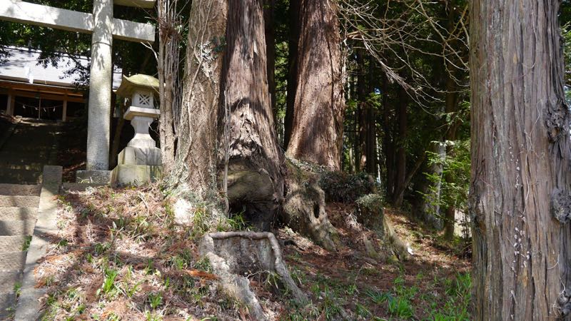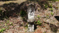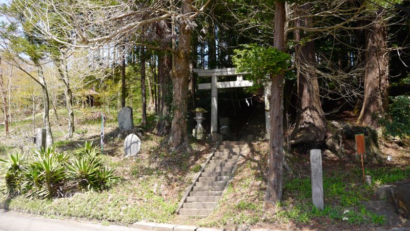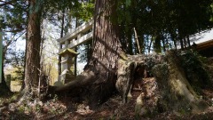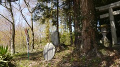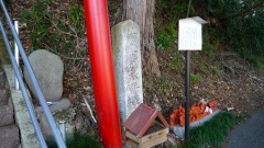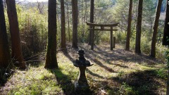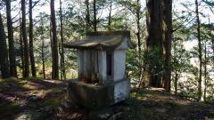 | 巨杉の切り株 | 鳥居右手斜面に石塔 | |