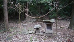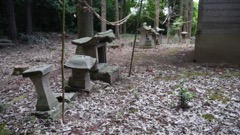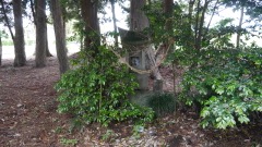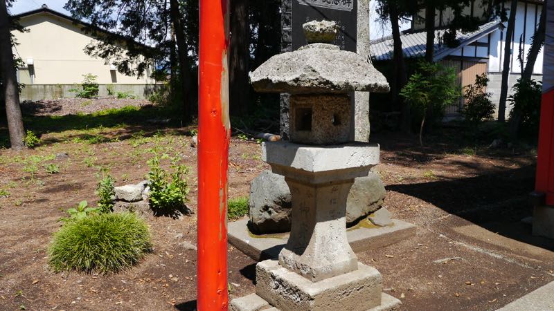 稲荷神社と右隣りの社に文政元年1818石燈籠,弘化四丁未1847石燈籠など。旧狛犬,石祠多数が保存されている。