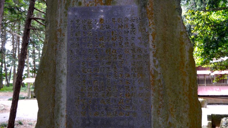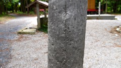 鳥居柱に「明治三十五年1902六月廿八日暴風被害/明治三十九年1906三月一日新建」