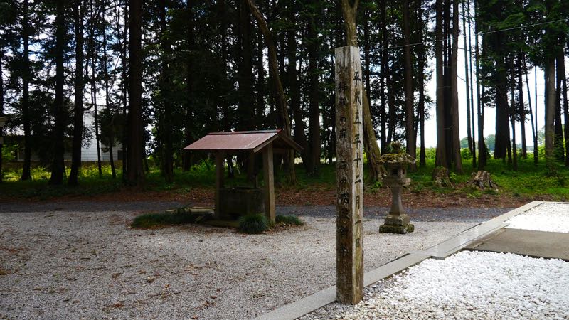 本殿裏手に石垣があり,柱に「下都賀郡石橋宿」と彫られている。