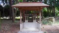 昭和48年1973東北新幹線敷設にともない愛宕塚古墳の石棺石下敷座2トンの石と屋根ふた5トンの巨石を境内に運んで保存した。社殿玉垣手前に並んでいる。経緯は女神碑に刻まれている。