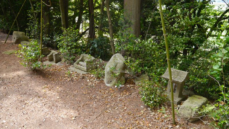 | 石祠三基 | 北参道の大正六年1917旗杭 | 北参道の鳥居 |