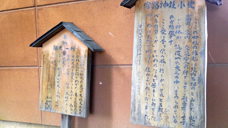大永三年1523創建,宮路権現と称した。火伏せの神,道路安全の神を祀る。新四号国道と国道接続にともなう町計画にともない現在地を整備してに遷宮。筑波大岩の中に御神体が祀られている。宮路神社小史の立看板をご覧ください。