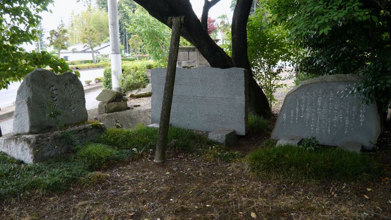 境内端の桜の木の下に庚申塔と日清日露徴発軍馬記念碑。