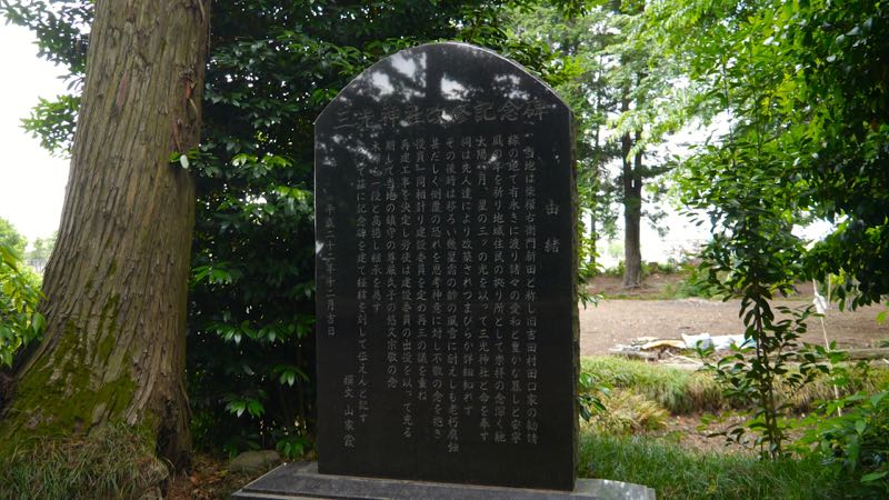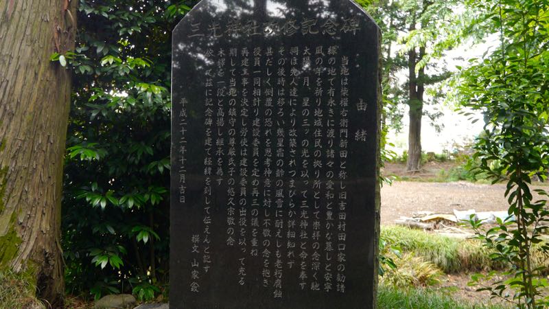 平成22年2010建立の改修記念碑に由緒が書かれているのでご覧ください。太陽・月・星のみっつの光で三光と称すとある。
