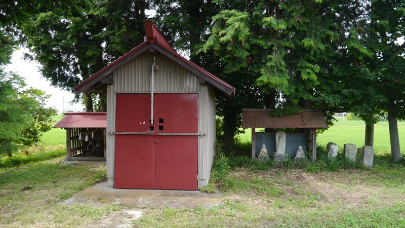 | 南隣りのお宅の神社 | 丸栃物産の社 | 田の先に石祠 |