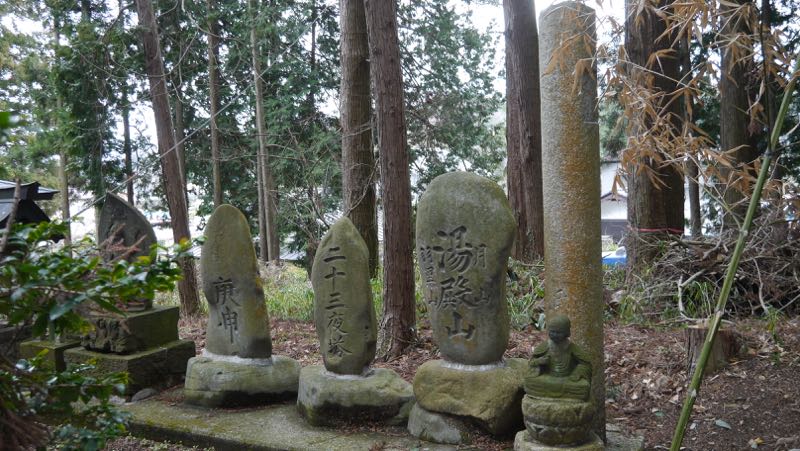 「天保十三年1842 湯殿山」の石塔が二の鳥居左手に保存されている。
