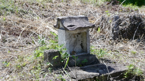 熊野神社から西に向かい東北線を越えた水田地帯にあるらしいのだが,見つからない。大谷石の壁に瓦葺の覆屋。