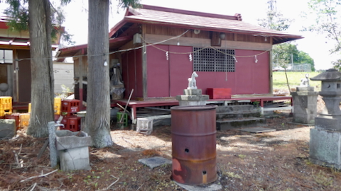 内川右岸の水田の森に鎭座。石鳥居の額に「鹿島大神宮」。詳しいことは分からない。