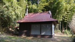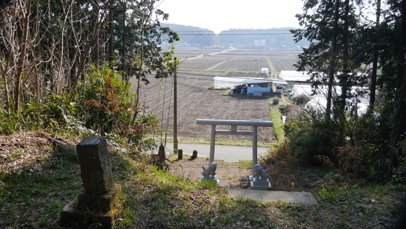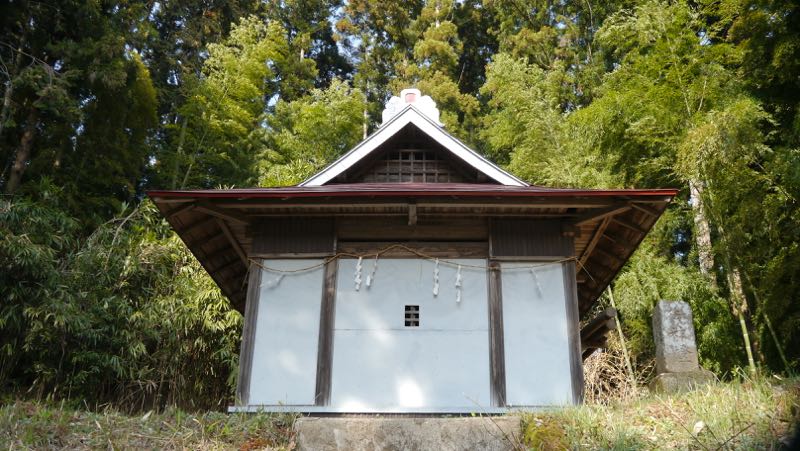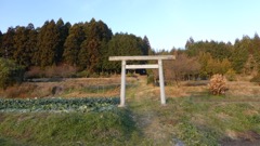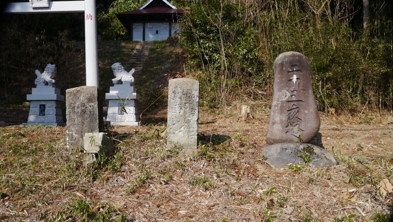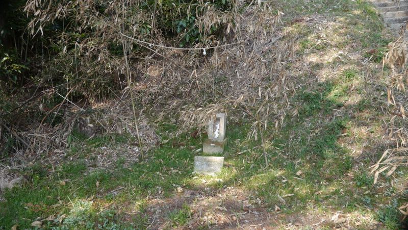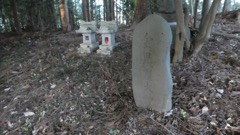 不詳。鳥居の手前に建っているので境内社?石鳥居の奥に別の本社か。
