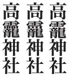 栃木県の「高お神社」は左の3種類の文字が使われています。雄・尾・男も少数あります。