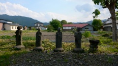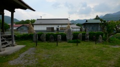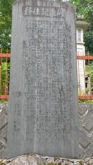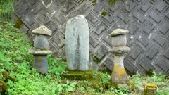 「芳賀伊賀守碑」の右に「五輪塔」が置かれている。その右の「五輪塔由来碑」には,昭和56年に栃木県真岡市京泉町の大塚氏より寄贈された,先祖芳賀伊賀守高継の子孫の五輪塔である旨が刻まれている。栃木県芳賀郡に築城した清原高澄が芳賀氏を名乗る。芳賀氏は宇都宮氏の重臣にもなっている。栃木県とは関係が深い。