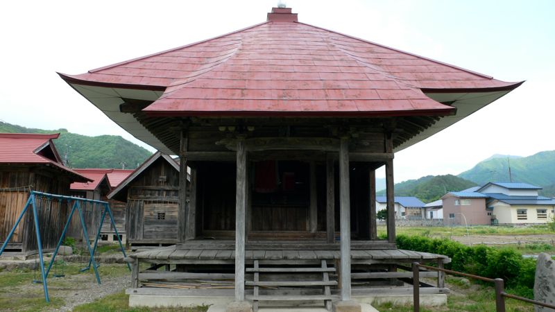 会津西街道を会津に向かい,塔の岪hetsuriを越えて右手にそれる。大沼ダムの北,阿賀川ぞいの山の東に。
