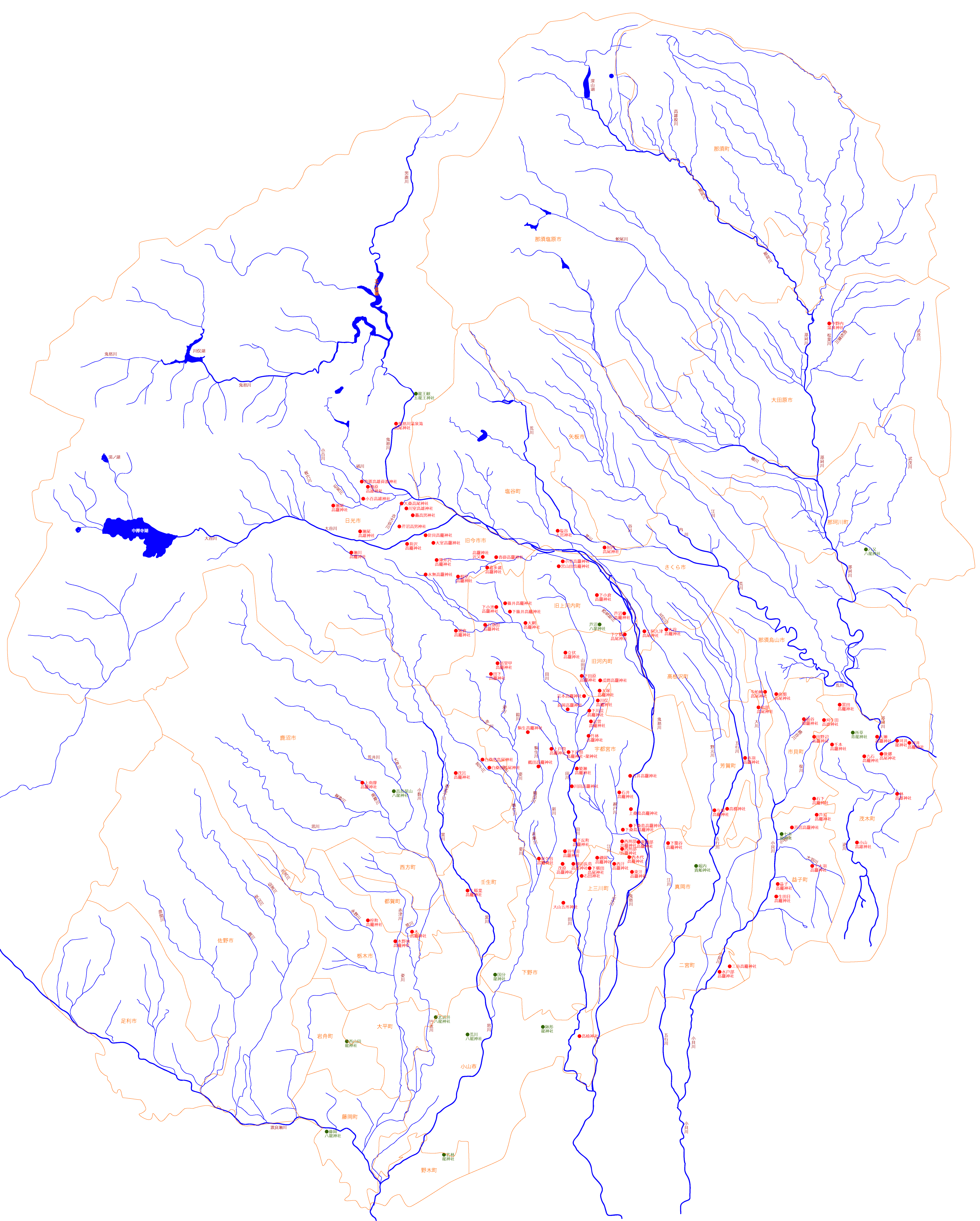 上図の赤丸が高龗神社所在地。高龗神を祭神とする龍神社も緑色で収録した。雨水を司る高龗神は祈雨祈晴の対象として祀られる。栃木県を南北に貫流する一級河川流域に高龗神社が集中する理由は稲作にある。稲倉魂命の稲荷神社でもよかったが,洪水・旱魃に対処するには高龗神が必然であった。雨に祝祷の口みっつ,雷雲に似あう龍字の組み合わせである。旱魃・大雨のたびごとに流域に高龗神が伝播していって江戸を養う関東平野の稲作地帯に高龗神社が集中したのである。